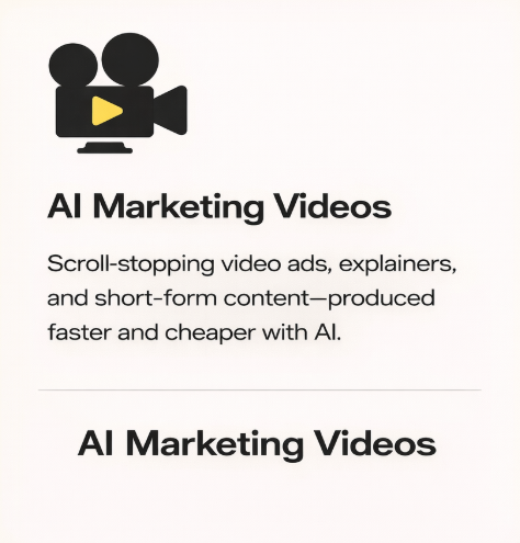 - AI-Enhanced Creativity: We harness the latest AI tools to accelerate production without sacrificing quality—creating high-impact marketing videos, sleek websites, and engaging social content in record time.